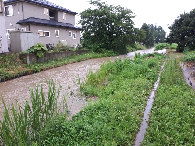 高水敷までしっかり水位上がってたので、堤外地の畑やら果樹園、野球場は水没(´- `*)