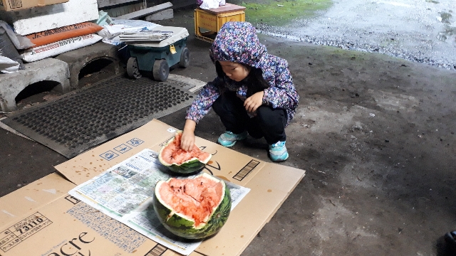 木刀をぶんまわしてカチ割ったスイカを手掴みで食べる人
