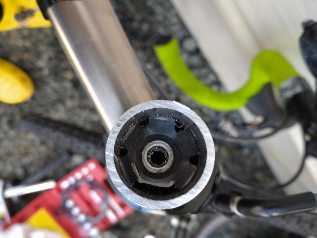 整備 日記 X Facebook コピー 2021.11.19 コラムカットして1xにしました! コラムカット、、、ソーガイドの位置とスターナットの位置を間違え、、、スターナット切っとるやないかい!! チェーンリングは42t スプロケット11-28なんだけど、どうかなぁ