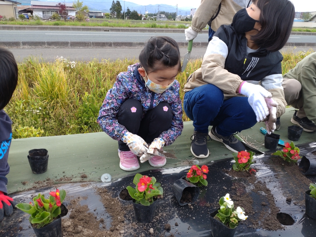 何らかの花を、公民館と産直の花壇に子供たちが植えるのをニコニコしながら見た。