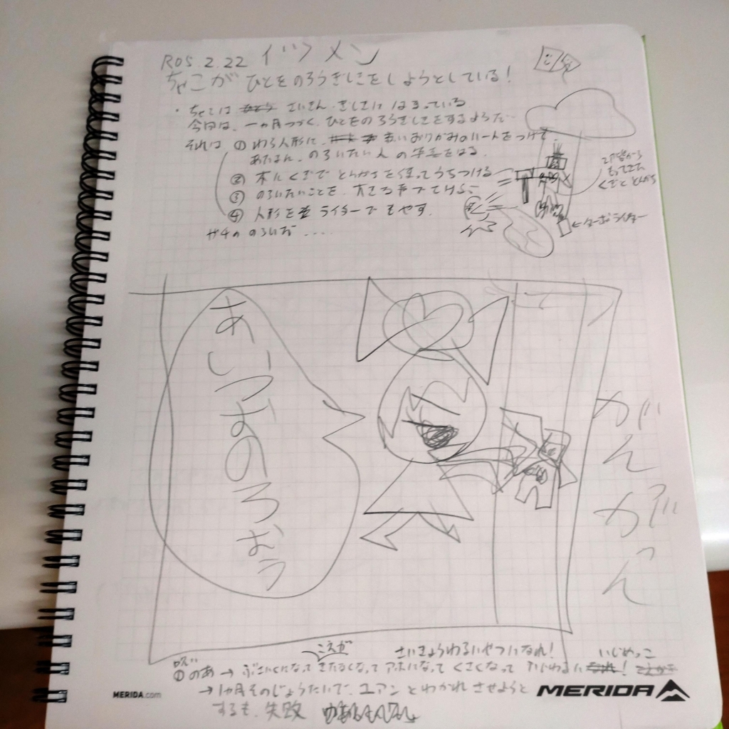 記録 日記 X Facebook コピー 2023.02.22 娘とのお話し遊びを絵日記風に記録しておくことにする ↑ こんな感じに ※娘には最近ホラーブームがきている そんな今日は昼間にZwiftを少々 寝不足のためか、物忘れが激しい一日だった(笑) ↑降ってくる雪を捕まえるのに夢中な人