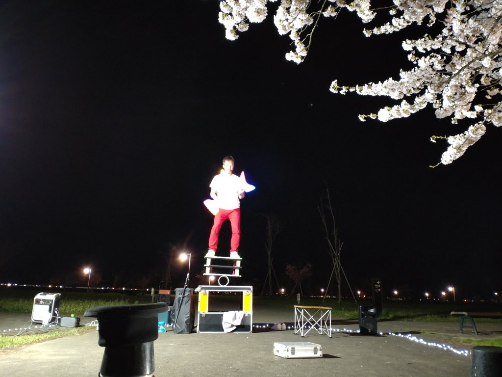 ピアノ発表会 日記 X Facebook コピー 2023.04.092023.05.29 くるみ割り人形 行進曲 小さな手でがんばってひきました おつかれさま。すてきだったよ! 夜は展勝地にお花見 大道芸人さんがきてた 手前の帽子は、気持ちをカタチにしたものを入れるものだって笑