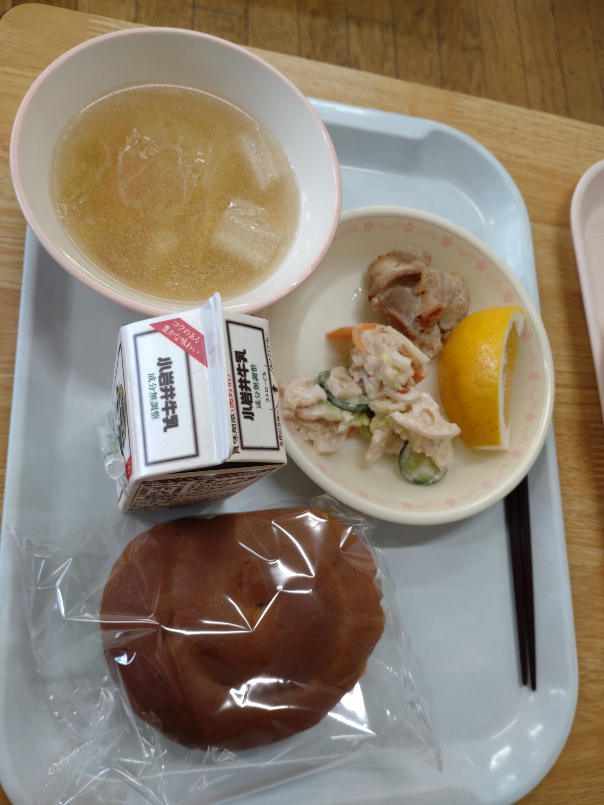 本日、5年生が林間学校で不在だったので、5年生の分を保護者が食べるのかな、、、と思わせておいて、2年生の量と味付けにしました!とな