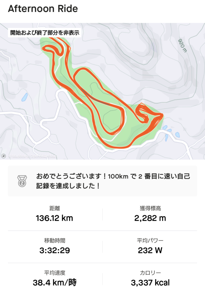 今回は久しぶりに100km超の138km(6km✕23周)ということもあり、しっかりカーボローディングをするなど、事前準備は滞りなく済ませることに成功