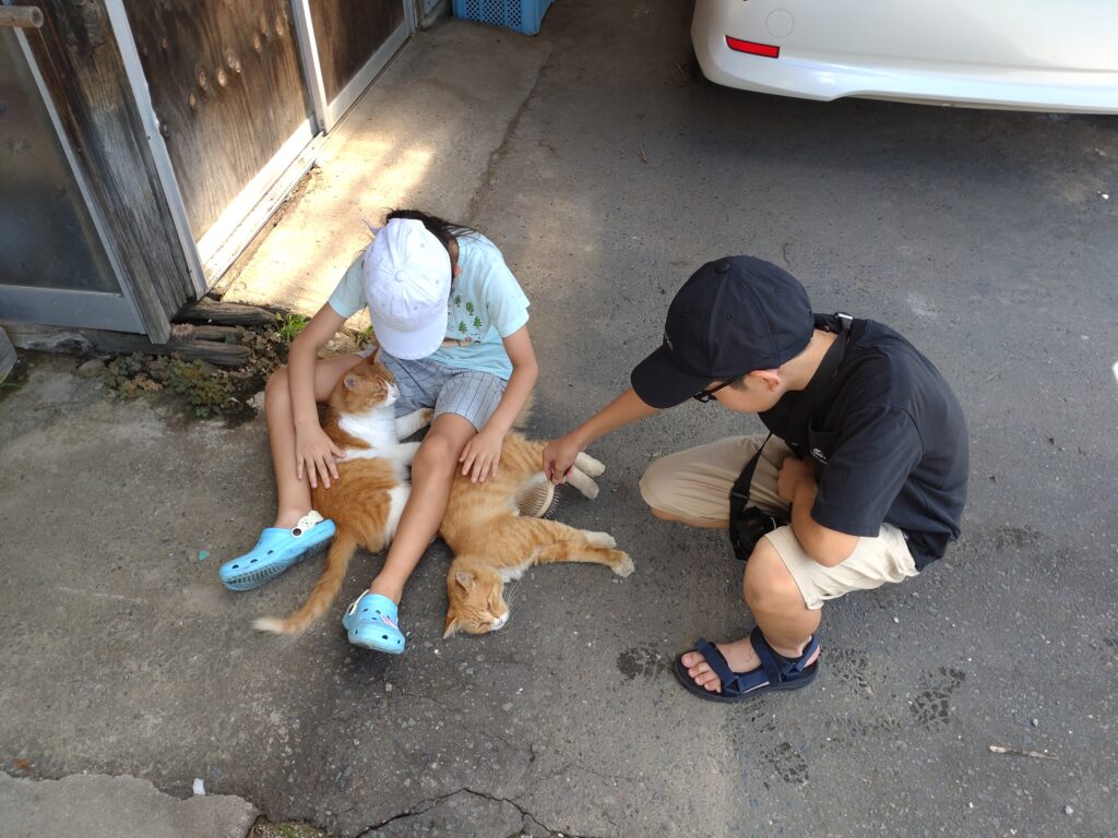 お盆day3 日記 X Facebook コピー 2024.08.16 滝行 今日も猫と戯れるなどした トノサマガエル? 親戚の池に、たくさんいた🐸 今年もお盆ロードを無事完走♪ 帰宅後、外に走りに行こうとしたら、雨 しかたがなくローラー