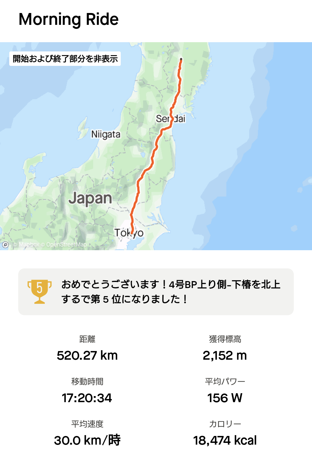 ちなみに、東京脱出までの15kmに1時間かかる。やはり都会は走りにくい