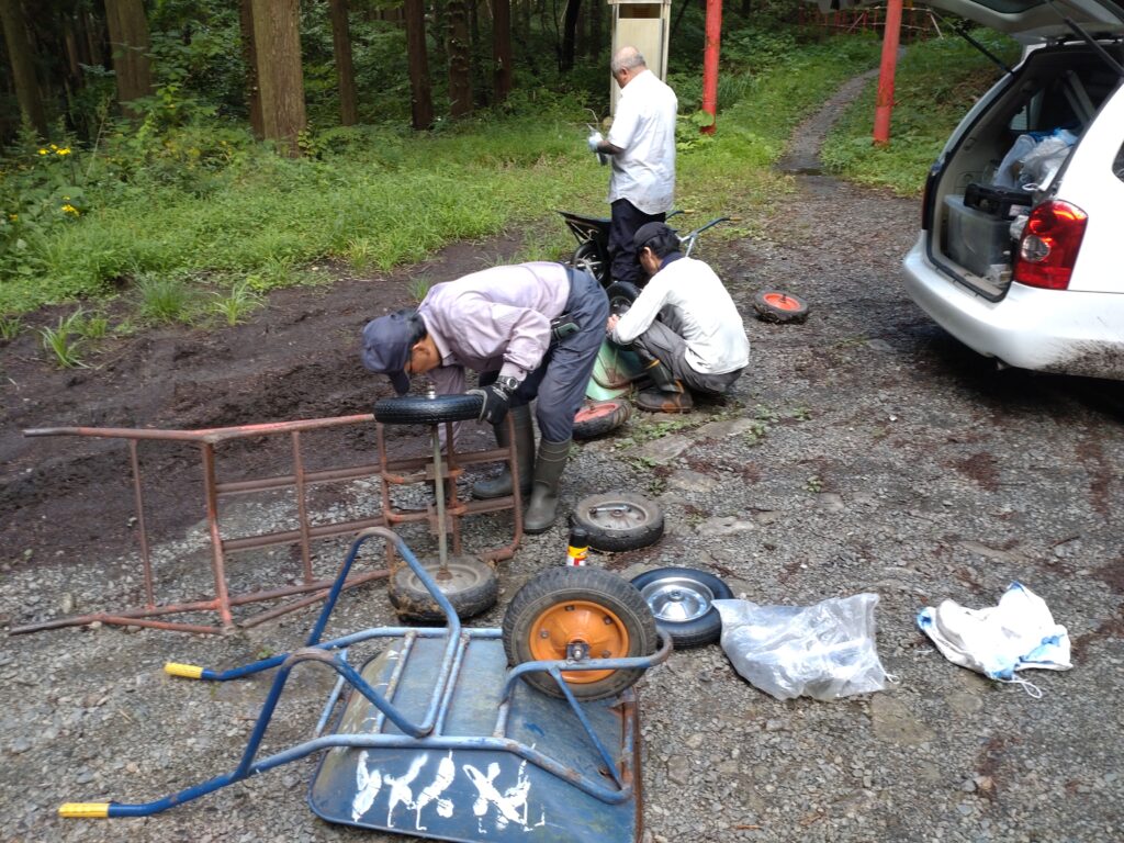 みんなで一輪車のタイヤ交換