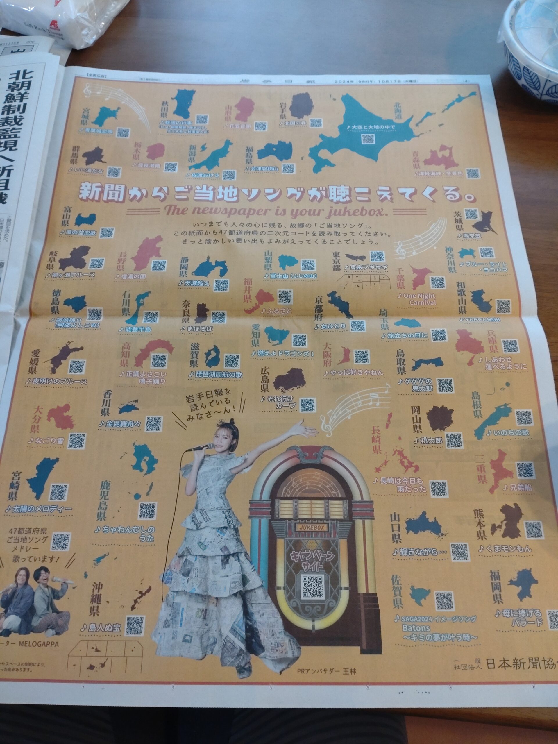 今朝の新聞に、おそらく新聞各社が選んだであろう47都道府県ご当地ソングがのってた