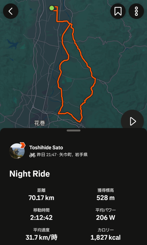 夜練実走は危険が危ないので、ちょっと控えようかしら